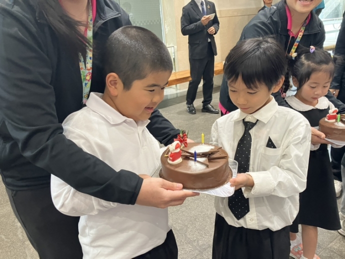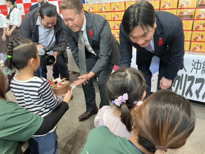 県洋菓子協会と製菓専門学生が共同で製作したクリスマスケーキを児童福祉施設に寄贈する取り組みが、12/4(木)に琉球調理製菓専門学校と専門学校大育にて行われました。