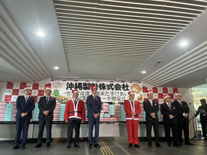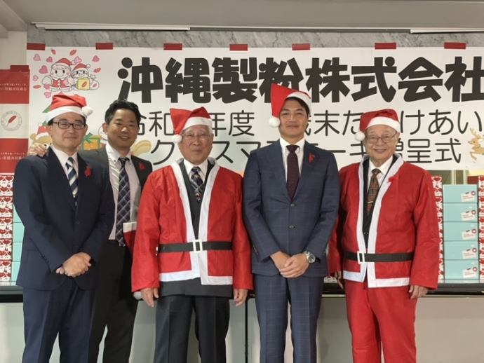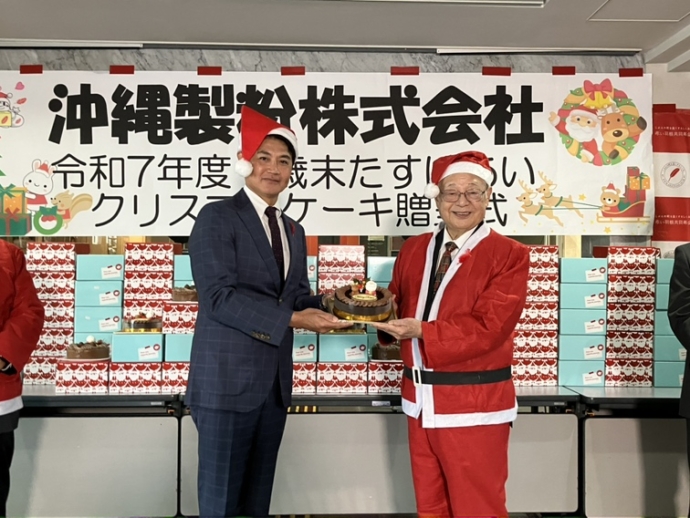 沖縄県社会福祉協議会を通して、県内福祉施設257カ所の方々に350個のクリスマスケーキを贈呈させて頂くことができました。これも日頃から、県内・外のみなさまにご愛顧いただいているおかげと心より御礼申し上げ、また社会福祉法人沖縄県共同募金会・沖縄県社会福祉協議会の皆さま、並びに関係者の皆さまにも多大なご協力を頂きましたことに感謝申し上げます。